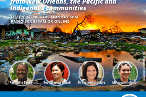 Vivian Langford presenter & speakers Rev Willie Bennett, Rev Seforosa Carroll, Cassandra Goldie & Murrawah Johnsonand Erin & Andy on panel