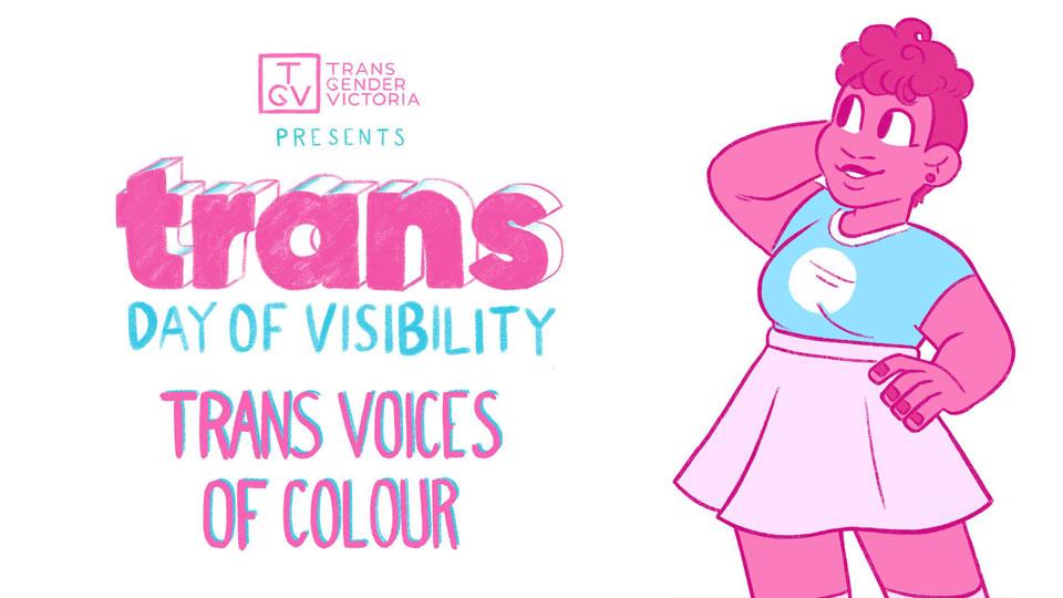 Sunday 31 March is International Day of Trans Visibility. 3CR joins Transgender Victoria for a panel discussion on Trans Voices of Colour hosted by Mama Alto and Sally Goldner. Live at Hares & Hyenas, 63 Johnston St Fitzroy, 12 - 1pm, broadcast on Out of the Pan and supported by a Victorian Government Pride Events and Festivals grant. For more information and tickets about this and other Transgender Victoria activities planned for the day jump online.