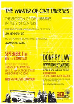 3CR's Done by Law presents a forum on the erosion of civil liberties in the 21st Century.