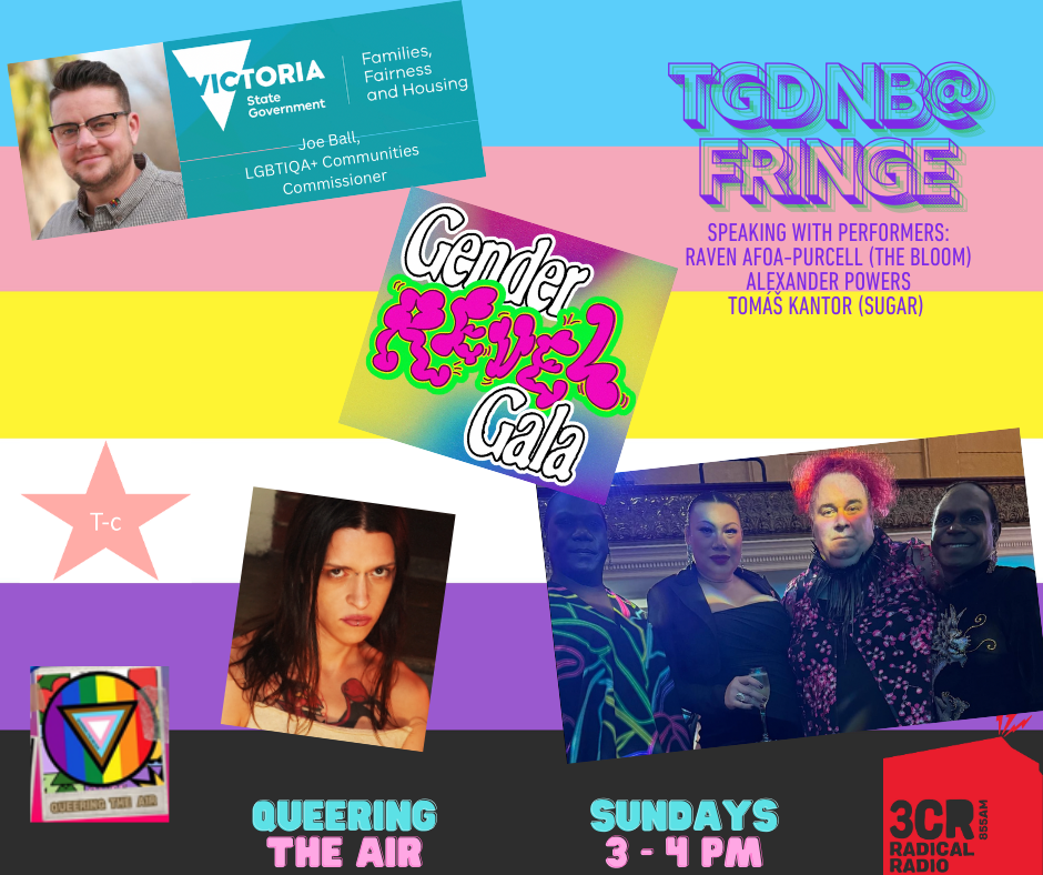 For this special Transgender Awareness Week episode of 3CR’s Queering The Air, Madison Moffat presents a multitudinal celebration of Trans, Gender Diverse and Non-Binary (TGDNB) culture and creativity: