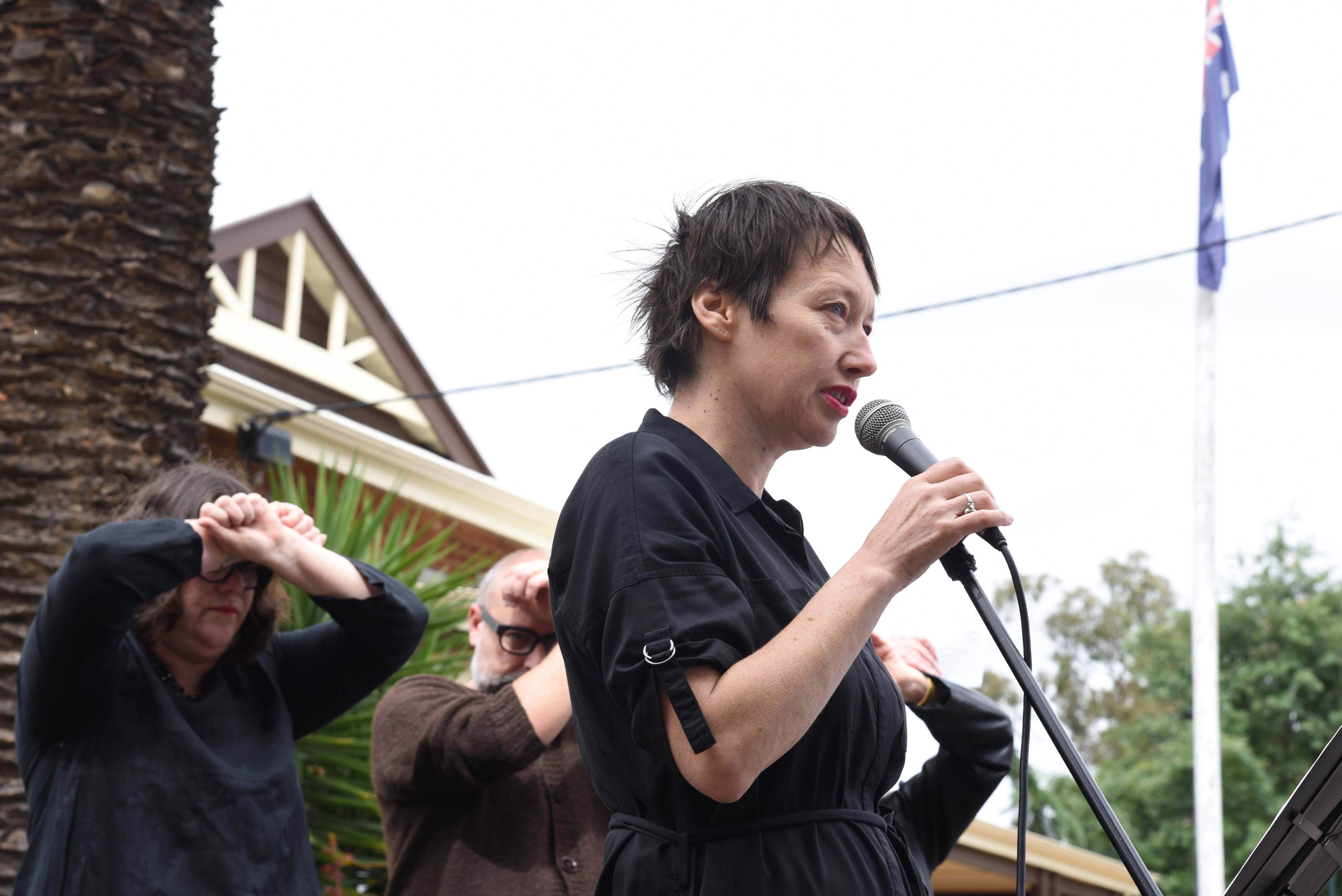 This was an outdoor recording in Castlemaine of poets reading the working of refugee poets, most of whom are in detention offshore, on Manus Island and Nauru. The readers of the poems were Andy Jackson, Klare Lanson, Adam Ford, Margot Feast, Ann de Hugard, Catherine Ryan, Paola Bilbrough, Kent McCarter and Janet Galbraith. The reading was an activity of the Free Poetry Project, affiliated to Writing Through Fences.