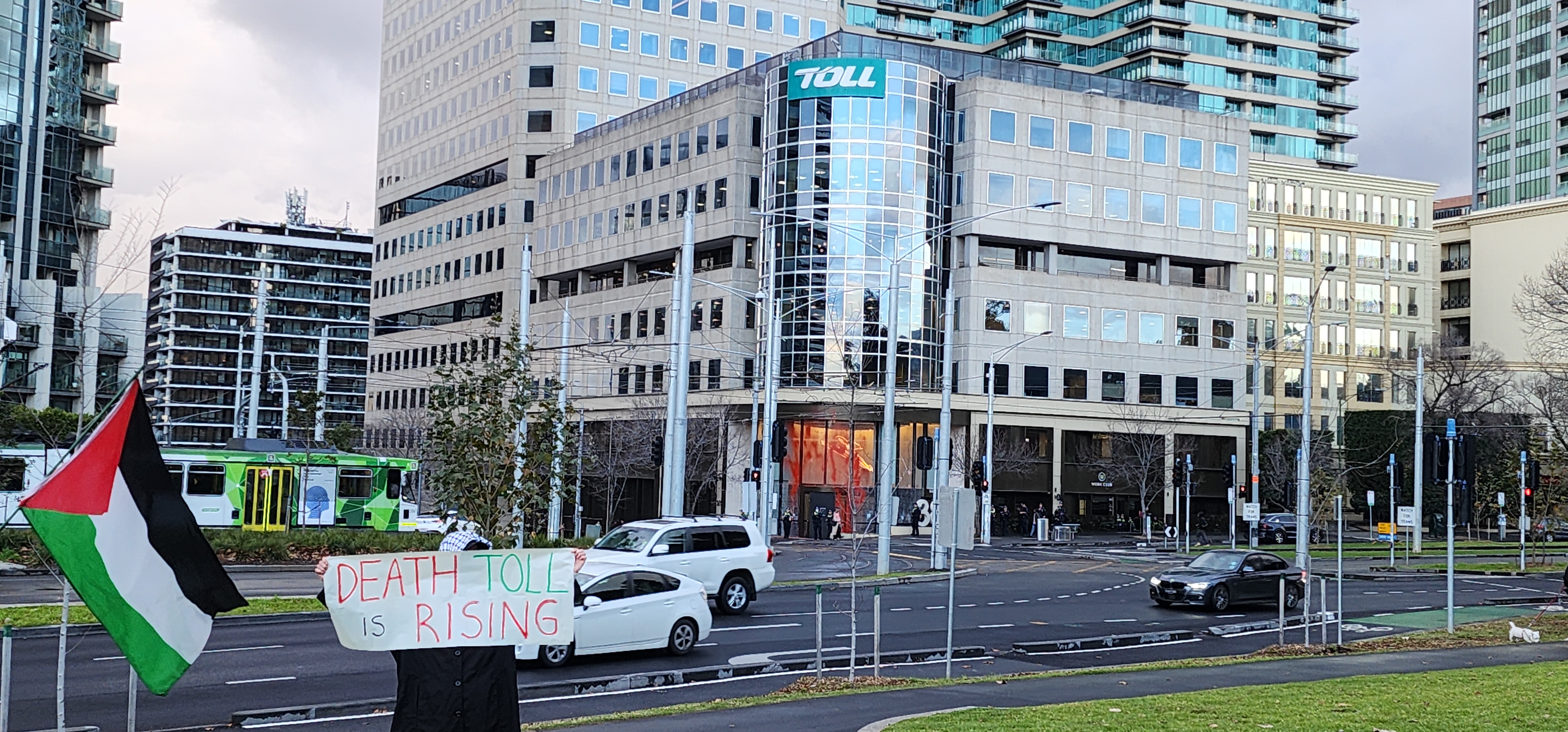 We listen to Inez’s live reporting as well as rally speeches and chants from the Toll Holdings - Stop Driving Genocide Rally, which occurred last week Thursday 17th of July. During the rally, a small group of protestors spoke about how the military supply chain supporting israel's genocide in Palestine includes numerous 'australian' logistics firms. Multiple ‘australian’ companies, including Toll Holdings, have been identified transporting weapons for export to the United States where they are used to drive the genocide in partnership with weapons manafacturers such as Thales. Toll has also been a key partner in supporting the Australian Federal Police, fossil fuel companies' destruction of Indigenous land, and in the logistics apparatus enabling human rights abuses in offshore detention on Manus Island and Nauru. Find out more about Toll's complicity by visiting https://tolldeath.noblogs.org/, For Autonomy Destroy Australia on Instagram, and via this post. The track you can hear in the background of the rally recordings is Tahiyati by acclaimed Palestinian lyricist Haykal.